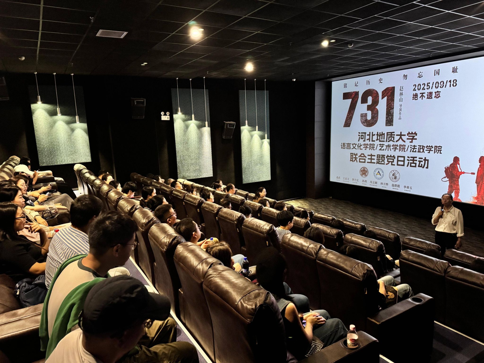 2025年是中国人民抗日战争暨世界反法西斯战争胜利80周年,为铭记历史,缅怀先辈,在国庆前夕,语言文化学院联合艺术学院和法政学院开展了《731》观影主题党日活动。
