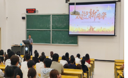 随后,付天军聚焦学科发展与个人成长,为新生送上务实“大学指南”。他先介绍学院学科建设已迈入全面提升新阶段,专业课程优化、实践平台拓宽,为学习提供了广阔空间。接着,他结合快节奏时代背景,对新生提出四点要求:“慢下来”,提升“语通天下,文以化人”之功,阅读经典著作,理解字里行间蕴含的复杂内涵;钻研理论,探索语言文化背后的逻辑奥秘,都需要我们放慢脚步,用心品味。“慢”不是拖延,而是让我们有更多的时间去感悟、去明辨、去消化并转化,在“慢”中厚积薄发,真正掌握知识的精髓,锤炼真正的本领。“坐下来”,就是要专注于学习,专注于成长,专注于拓展认知的边界,专注于提升格局与境界。“思起来”,要学会思考、敢于质疑,培养批判性思维和独立思考能力。这样,我们就能够深入理解所学知识,发现问题、分析问题并解决问题。“赏起来”,要用心、用情欣赏中华优秀传统文化的璀璨星河,在《诗经》与唐诗宋词的韵律中感受文人墨客的家国情怀,在青花瓷的优雅器型与精美花纹里触摸千年匠心的不凡创造,在戏剧的唱念做打中领略传统的美学气韵与深刻哲理;深入鉴赏燕赵文化的慷慨激昂与大河之北的沉稳与大气;到西柏坡革命圣地,聆听 “新中国从这里走来” 的铿锵与雄壮。每条建议都紧扣成长需求,明确努力方向。