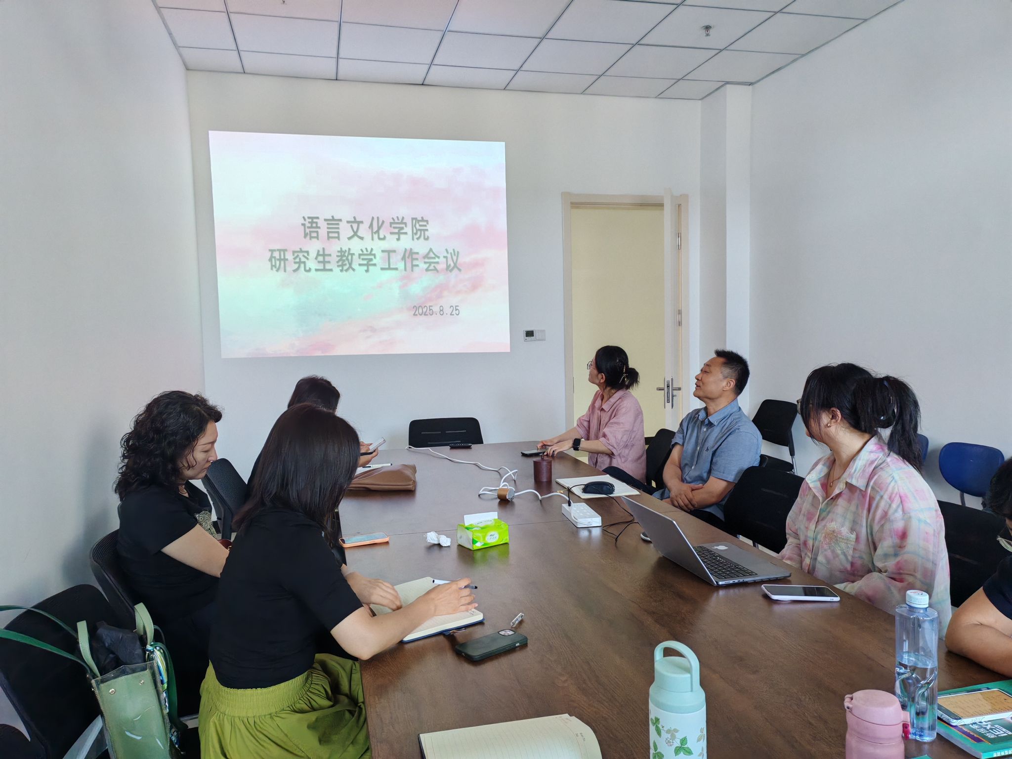 2025年8月25日上午,语言文化学院在学院403室召开研究生教学工作会议及导师培训会。学院院长付天军、MTI授课教师组、研究生导师及研究生英语(公共外语)教师参会,重点围绕新学期研究生教学筹备、导师职责落实等工作展开部署。