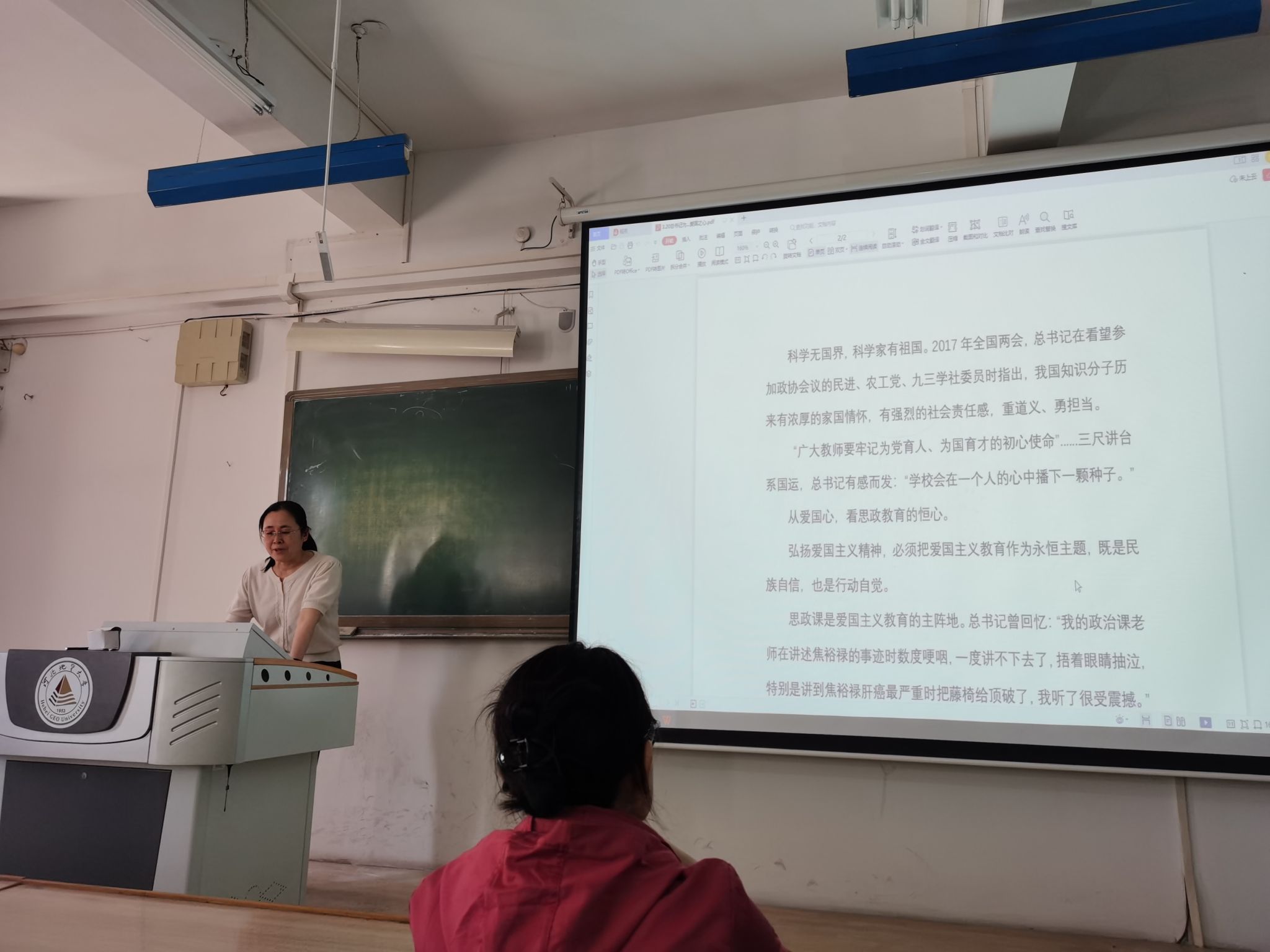 学院党委书记宋朝霞带领全体与会人员学习了人民日报客户端发布的文章《总书记为何一直强调爱国心》,并就学院立德树人、课程思政工作提出要求。她指出,“追梦路上,复兴征程,今日之中国就是最精彩的爱国课堂”,国家发展当中能感受到的点点滴滴都可以融入课堂教学。