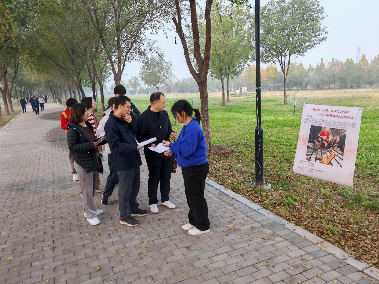 参赛师生们手持地图,迅速投入到了比赛中。大家三三两两结队而行,相互鼓励、携手共进,遵循着地图的指示,穿梭在正定森林公园之中,寻找着一个个“长征站点”,阅读打卡点展示的长征故事,回答相关问题。最终大家以饱满的热情和坚定的意志完成了比赛,展现了团结协作、勇于拼搏的精神风貌,共同传承和发扬了长征精神。