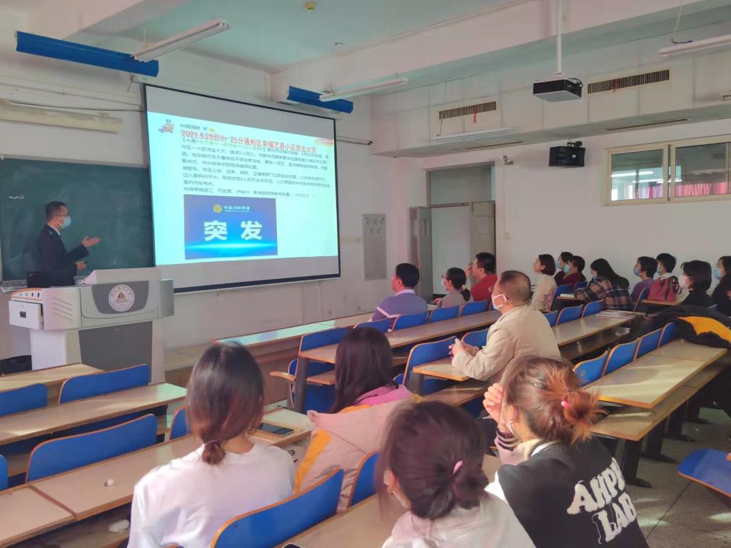 12月2日,为加强师生消防安全意识,提高师生消防安全能力,语言文化学院与安全工作处联合组织了学院师生消防培训。学院党委书记林琳、党委副书记杨旭辉、副院长安尚勇和全体教师、各班级学生代表参加了培训。