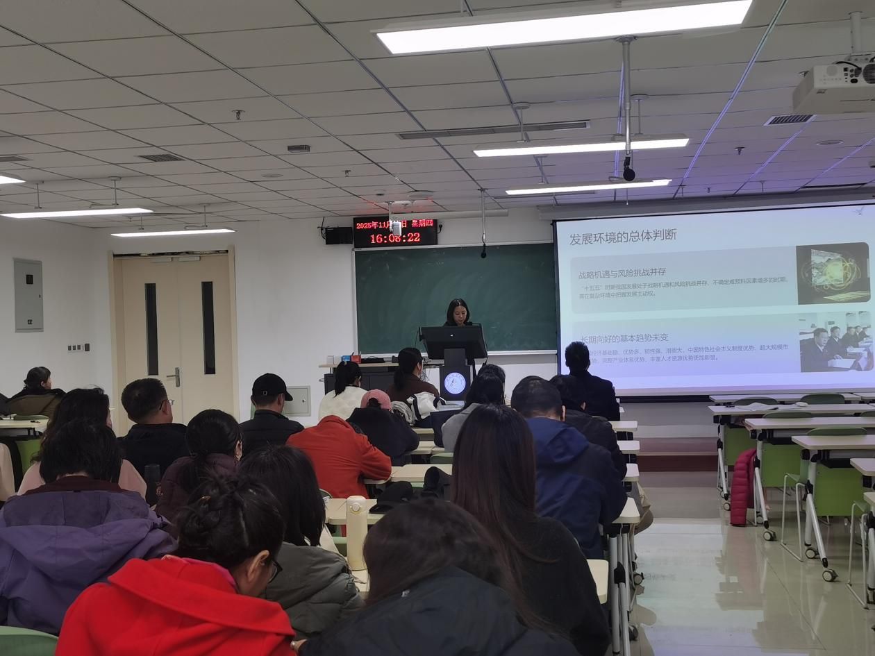 2025年11月27日下午,根据学院党委理论学习安排,语言文化学院召开教职工大会,专题学习了中国共产党第二十届中央委员会第四次全体会议精神。本次学习由学院党委委员苏菲同志领学,全体教工参加了学习。
