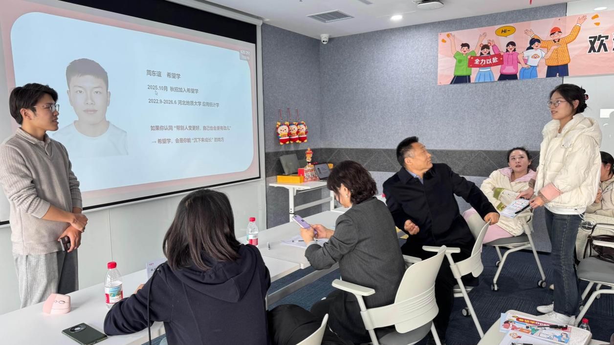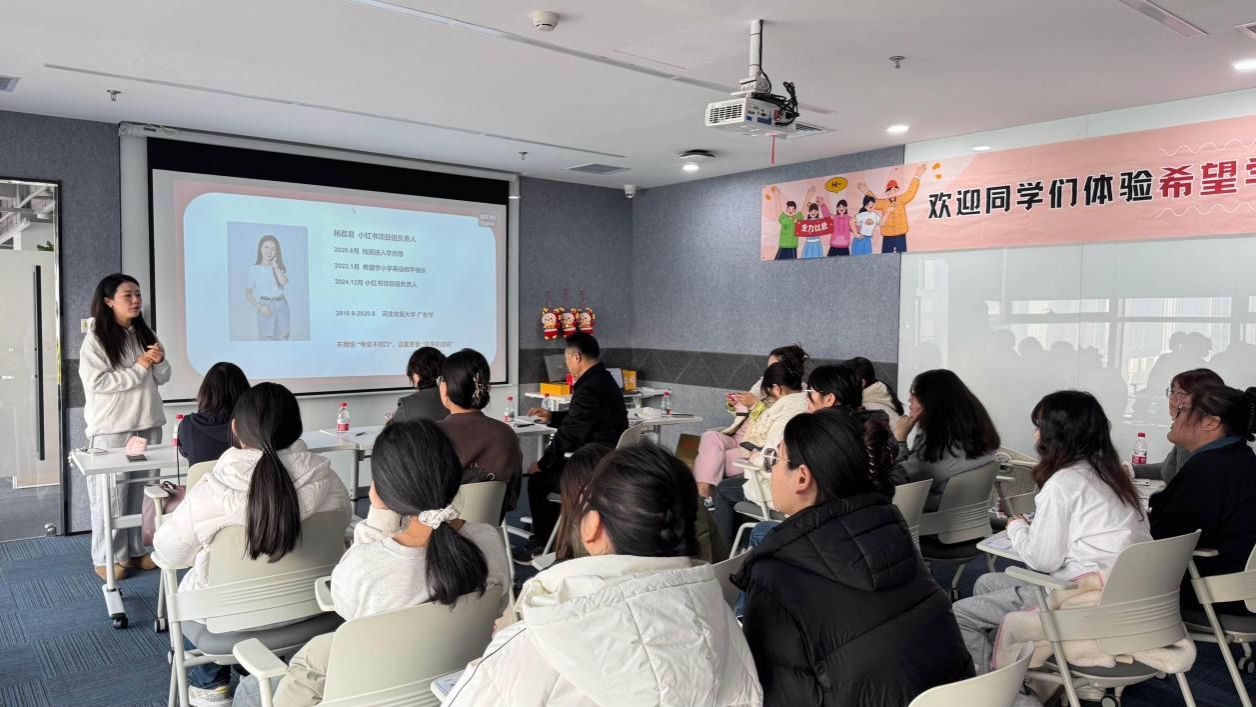 11月28日,语言文化学院与希望学线上培训学校石家庄基地联合开展实习就业Open Day活动,搭建校企沟通桥梁,助力学生深入了解在线教育行业发展动态。院长付天军带领汉语国际教育专业负责人苏菲、分团委书记高珊珊和学院大四学生参加了此次活动。
