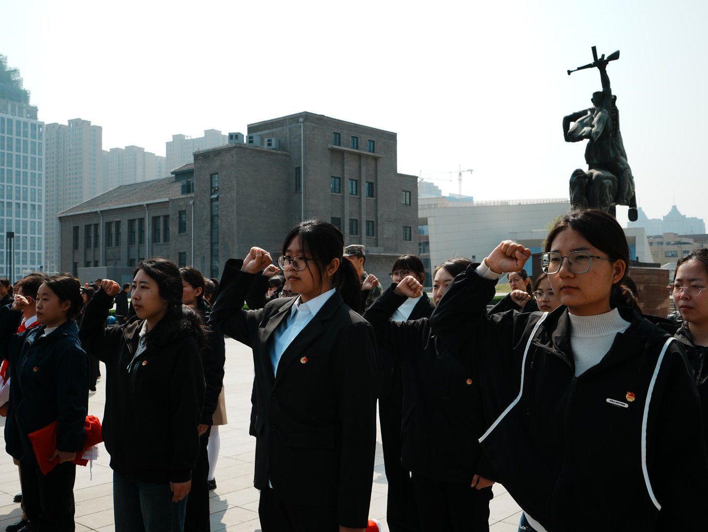 为缅怀革命先烈、传承红色基因,扎实推进立德树人根本任务,2026年3月31日上午,河北地质大学语言文化学院党委书记宋朝霞、党委副书记杨旭辉带队赴石家庄解放纪念馆与石家庄解放纪念碑,参加由河北省德育共同体主办的 “清明祭英烈 薪火育新人”清明祭英烈主题活动暨大中小一体化德育建设示范活动。学院学生党支部30余名党员和入党积极分子与河北艺术职业学院、石家庄市范西路小学的团员、少先队员代表携手结对,共同开展沉浸式红色教育,接受革命精神洗礼。