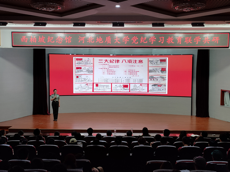 为加强廉洁文化建设,推进党纪学习教育,2024年6月13日下午,西柏坡纪念馆受语言文化学院、艺术学院、马克思主义学院三个学院邀约,在春秋讲堂开展了“这里是立规矩的地方——西柏坡时期党的纪律规矩建设主题思政课进校园”主题党建活动。