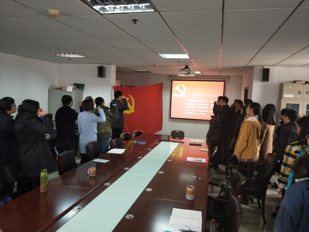 在动员大会上,王树明书记首先带领参会所有党员,面向党旗重温入党誓词,并传达了学校关于深入学习贯彻党的十九大精神动员的相关精神,并做了“不忘初心、牢记使命,开创学院建设发展新时代”的讲话。他在讲话中指出,我们要深刻认识党的十九大对党和国家、对教育事业、对每个中国人的伟大意义。党的十九大为我们教育事业的发展作出了精准指导,与我们每个人息息相关,学习贯彻党的十九大不仅是政治任务、还是工作需要、更是现实需求。他还就学习宣传党的十九大精神提出了四点要求:一要高度重视。党的十九大在我党我国发展进程中具有划时代和里程碑意义,大家务必要充分认识,进一步增强学习的自觉性和坚定性。二要学懂学透。党的十九大报告整体气势磅礴、思想深刻,文字功底、逻辑结构非常出色,大家一定要多学多看、学懂学透。三要多思多想。报告中很多内容都是实践的总结、集体智慧的结晶,要多思考、多去想,悟深悟透。四要求真务实。要拿出实实在在的举措,在教学中,在学习上要以“钉钉子”的精神全面抓好落实。