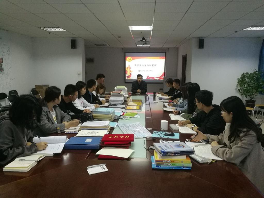 10月18日下午,外国语学院学生党支部在综合楼706会议室举办了入党积极分子培训班。本次课程由学院党总支书记王树明主讲。