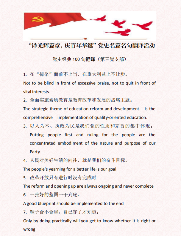下一条:【党史学习教育·献礼百年华诞作品展】“译光辉篇章,庆百年华诞”党史名篇名句翻译作品(二)
