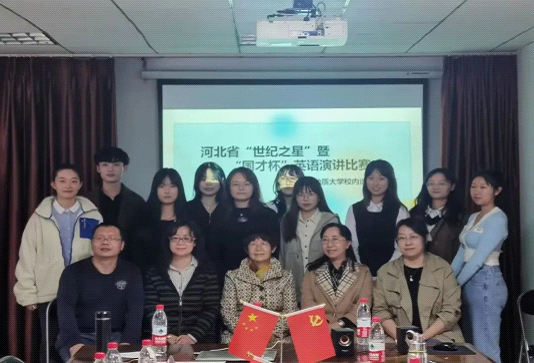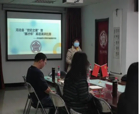 2022年10月13日下午两点,在语言文化学院举办了河北省“世纪之星”暨“国才杯”英语演讲比赛校内选拔决赛。比赛邀请了我校李金英,刘苹苹,张南南,高树钦,孙黎明5位老师担任评委。杨雯卉,宋文谦两名同学主持了比赛。