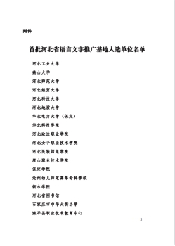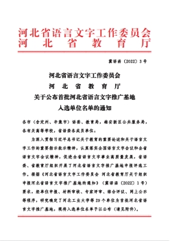 日前,河北省教育厅发布《关于公布首批河北省语言文字推广基地人选单位名单的通知》(冀语函〔2022〕3号),河北地质大学入选首批河北省语言文字推广基地。