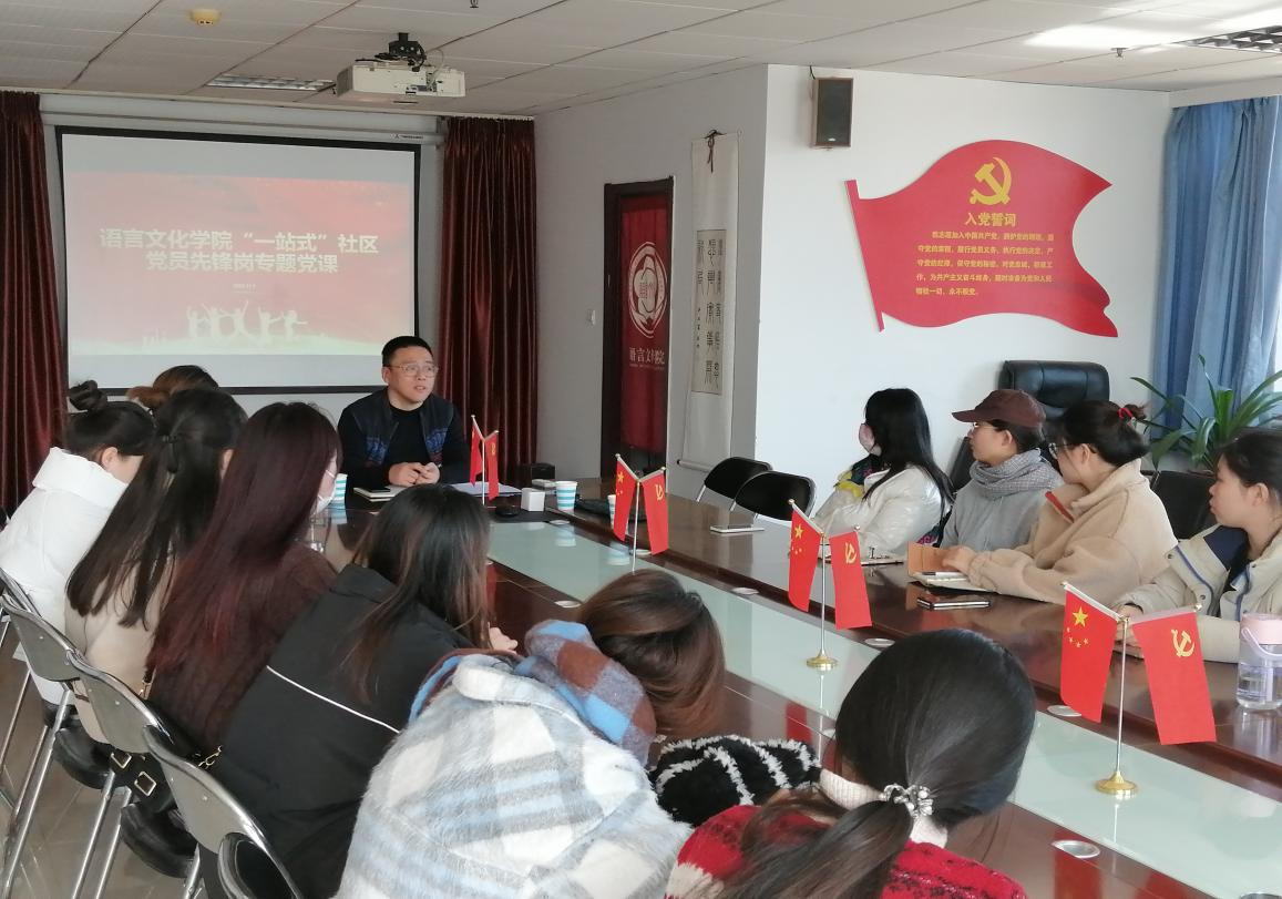 为强化党员们的理论武装,推动习近平新时代中国特色社会主义思想、党的二十大精神进社区、进宿舍、进头脑,2023年11月9日,语言文化学院党委副书记杨旭辉为“一站式”学生社区党员先锋岗的党员们讲专题党课。