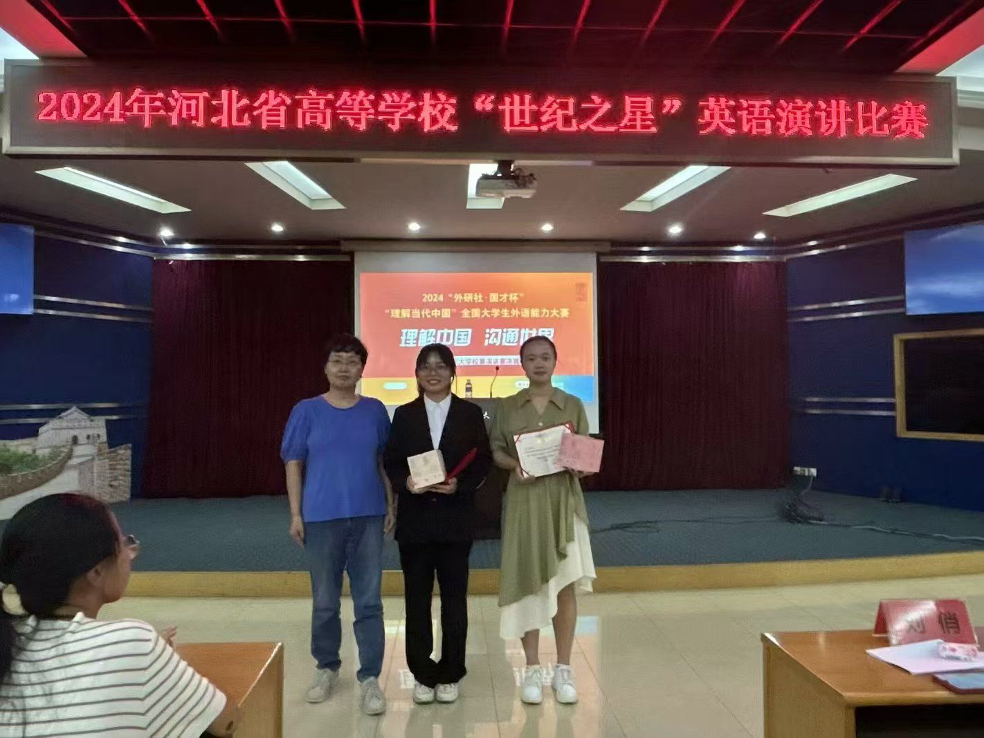 最终,比赛评选出特等奖1名,一等奖2名,二等奖5名,三等奖6名,优秀奖3人。高崇宵、郭佳茜、贾佳3名同学晋级省赛。语言文化学院的老师为获奖同学颁发了荣誉证书以及奖品。