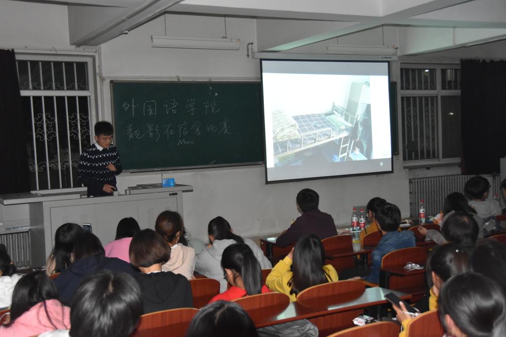 2018年11月2日18:00外国语学院大一全体同学在北校区教二101举办了以“靓颖在宿舍”为主题的比赛。大一全部23个宿舍参加了此次比赛。最终评出一等奖3个,分别为206、207以及403宿舍;二等奖6个;三等奖14个。