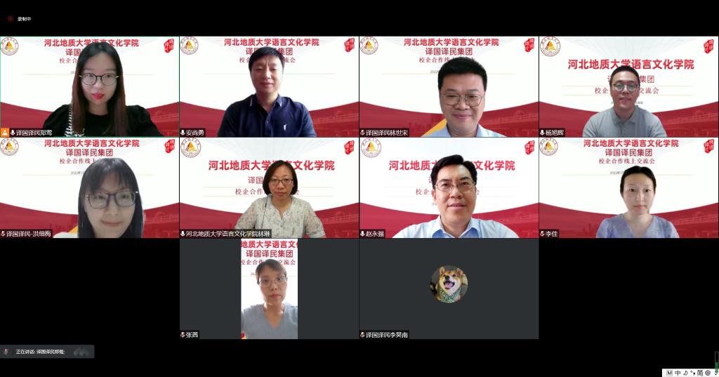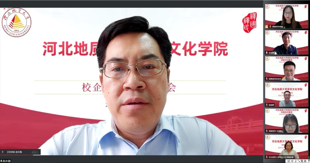 为贯彻落实党中央、国务院、省委和学校关于《访企拓岗促就业专项行动实施方案》精神,全力促进毕业生高质量就业,7月11日下午,我校语言文化学院与译国译民集团举行线上座谈会,共商共建校企合作。我校副校长赵永强,语言文化学院党委书记林琳、副书记杨旭辉、副院长安尚勇及英语、捷克语专业教研室主任,译国译民集团董事长林世宋、高校事业部总经理郑莺等出席会议。