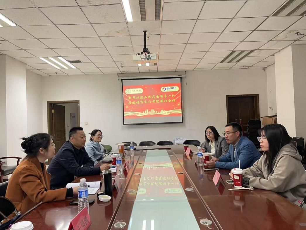 4 月 3 日下午,石牧药业外贸部经理刘宪甫、人事主任詹红霞、外贸业务员张丽欢一行三人到访语言文化学院,就进一步深化双方合作展开深入交流。语言文化学院院长付天军、副院长李圣轩、英语专业负责人陶沙以及教师代表王崇凯参与了此次校企合作交流会。