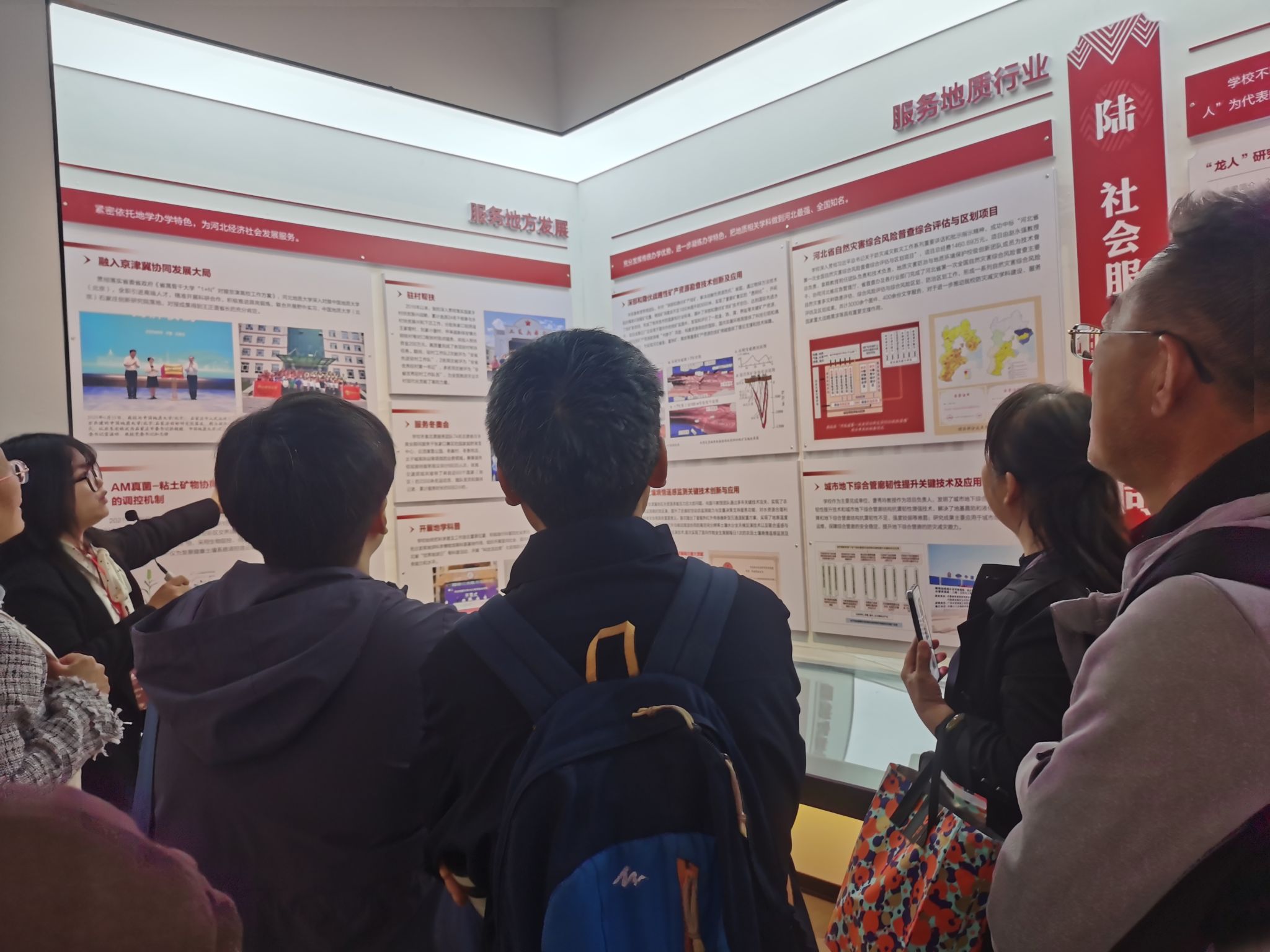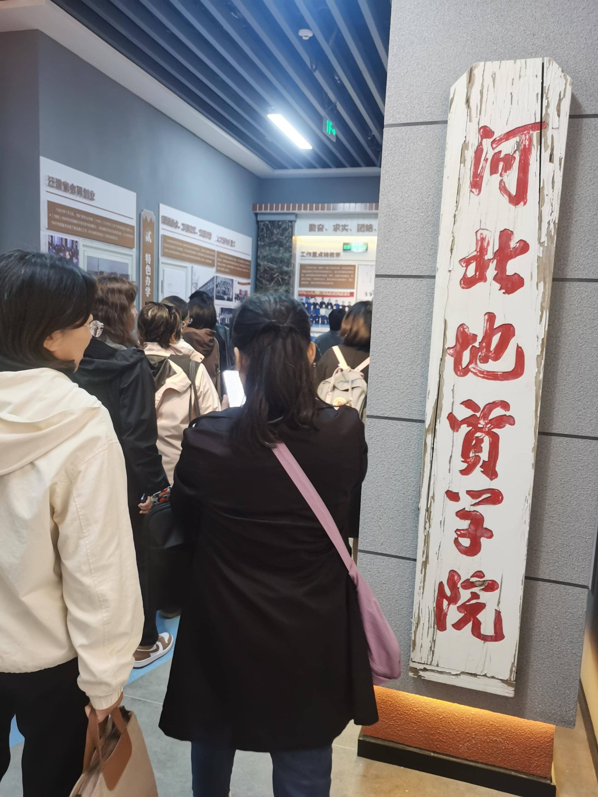 为加强校史学习,传承地大精神,2026年4月9日下午,语言文化学院党委组织全体党员、教职工前往我校校史馆进行参观学习。在校史馆讲解员的带领下,学院教职工依次参观了馆中的六个展厅,宣化地校时期展厅,展现了建校初期艰苦奋斗的历史;河北地质学院时期展厅和石家庄经济学院时期展厅,讲述学校更名大学前锐意进取的发展历程;河北地质大学时期展厅,呈现了学校现阶段踔厉奋发的现状和斐然的成绩,校友厅中展示了学校众多的优秀校友,他们在各行各业中取得了令人瞩目的成就。展望厅则表现了学校对未来的科学规划。老师们一边倾听讲解员精彩的讲解,一边仔细观看展品和图片,并不时驻足观看展品的细节。讲台教具教案,勘探工具、矿物标本,奖章奖状,各种珍贵的历史图片、文件……学校校门昔日悬挂的校名牌匾,如今也在展馆中展出,将学校七十余年的积淀深深镌刻。观展过程中,老师们感慨连连,对经历过的历史场景展开追忆,对学校的发展表示了由衷的自豪。
