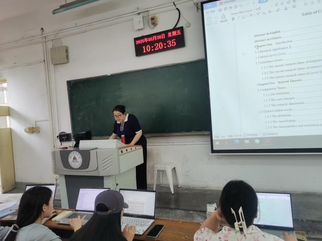 5月30日上午,语言文化学院资深教师李国英老师为英语专业2025届毕业生及首次参与论文指导的导师开展毕业论文规范化专题培训。此次培训紧密围绕学院本科教学评估整改工作部署,通过系统性讲解与针对性答疑,为师生提供论文写作与指导的全流程“精准导航”,推动人才培养质量持续提升。