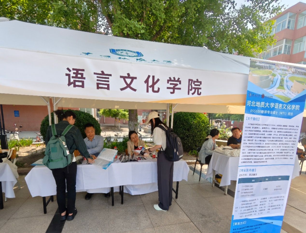 上午,在夏日广场开展了由中国地质大学(北京)研究生学院和我校研究生学院共同主办的招生宣传活动。我院宣传小组向咨询学生详细介绍了我校MTI的办学特色、课程体系、培养方式及实践平台等内容。活动现场气氛热烈,同学们积极提问,老师们热情解答,使参加活动的学生进一步加深了对我院翻译专业硕士学位点的了解。