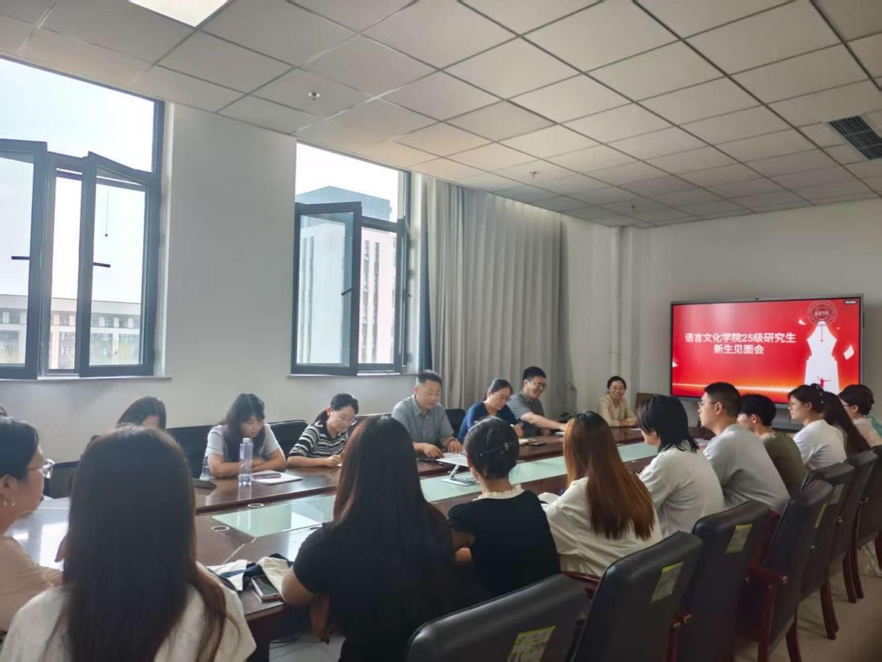 8月31日下午,语言文化学院2025级研究生见面会暨入学教育活动在学院会议室举行。学院领导、MTI导师、部分任课教师及全体2025级研究生参加了会议,活动由MTI中心副主任陶沙主持。